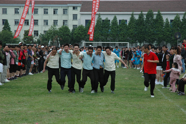 公司员工参加镇第四届全民运动会在阳光伙伴比赛中