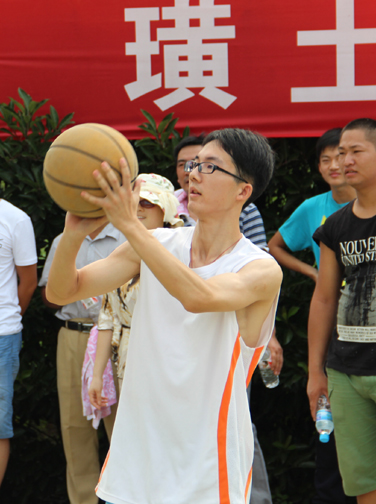 图为我公司选手冯俊参加璜土镇趣味运动会定点投篮比赛现场